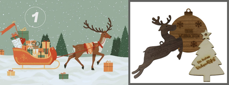 Jeweils 5 Set‘s mit je 5 Anhänger warten auf ihre Gewinner. Ob Rentier, Weihnachtskugel oder Weihnachtsbaum – die tollen Holz-Anhänger werden zum Blickfang auf jedem Geschenk!