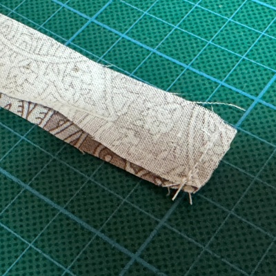 Diese Streifen sollten für den Untersetzer 2 cm breit und 2 m lang sein. Du kannst auch gut Streifen aneinandernähen, damit du die entsprechende Länge erhältst. Lege dazu die Streifen links auf links und nähe knappkantig mit einem Geradstich ab. Am Anfang und Ende verriegeln!