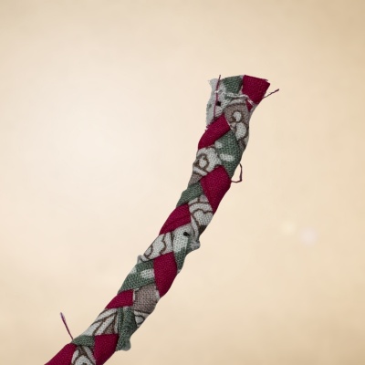 Jetzt kannst du mit dem Flechten beginnen. Achte darauf, gleichmäßig und nicht zu locker zu flechten, damit dein Untersetzer stabil und schön wird. Entwirre die Streifen am besten regelmäßig während des Flechtens – so behältst du den Überblick und arbeitest leichter.