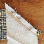 Die Teile C und D rechts auf rechts auf die untere und obere Krawattenspitze legen. Entlang der schrägen Kanten mit einem Geradstich nähen. Anschließend die Spitzen zurückschneiden, damit sich diese besser wenden lassen.
