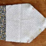 Nun die Stoffteile A und B an den schrägen Kanten rechts auf rechts aufeinander legen und zusammennähen. Beide Teile aufeinander so verschieben, dass mit einer Nahtzugabe von 1 cm genäht werden kann. Dabei stehen die Ecken etwas über. Anschließend die Nahtzugabe auseinander bügeln.
