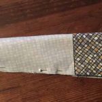 • Die Krawatte kann auch am Stück zugeschnitten werden. Wichtig dabei ist, dass der Zuschnitt im 45 Grad Winkel erfolgt. Somit lässt sich die fertige Krawatte später einfacher binden. Ein gerader Zuschnitt mit dem Fadenlauf ist ebenfalls möglich. Dabei nur eine lose Stoffeinlage verwenden, die mittig auf der Rückseite der Krawatte eingelegt wird.