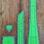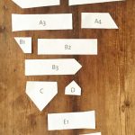 Zunächst das Schnittmuster ausdrucken und die Einzelteile zuschneiden. Beim Drucken darauf achten, dass unter den Druckereinstellungen die Originalgröße gewählt wurde (nicht auf die Seitengröße anpassen). Die einzelnen Schnittteile an den angegebenen Markierungen zusammenkleben. Es entstehen vier Schablonen: A, B, C, D
